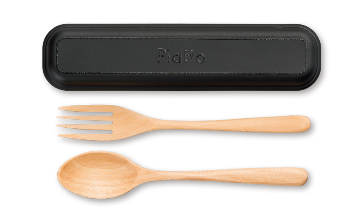 piattoシリーズランチボックスにマッチする木製のフォークとスプーンのセットです。食洗機使用不可