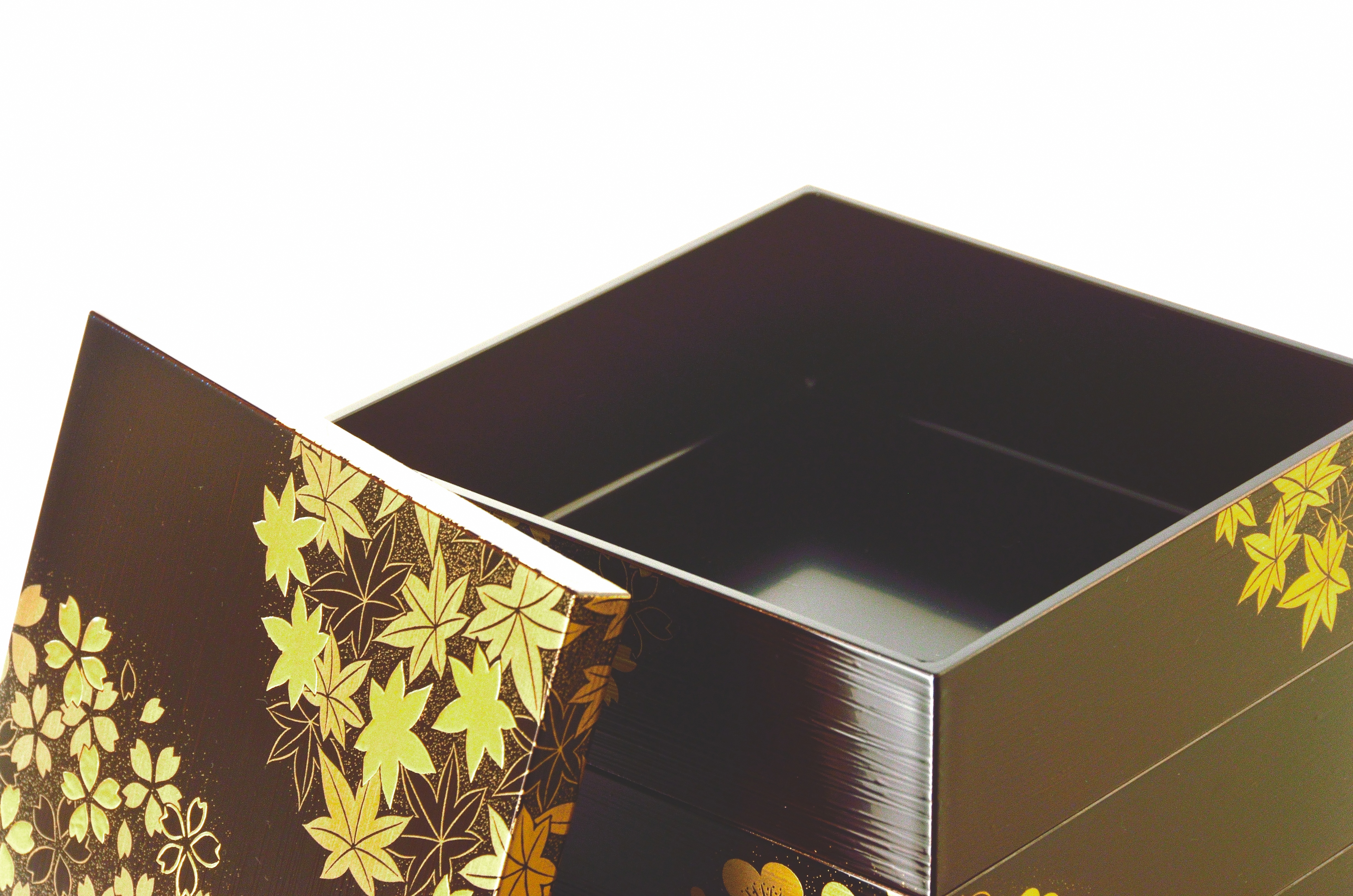 - 山中塗 花丸春秋5.0三段重(溜内黒 刷毛目)KT2034A